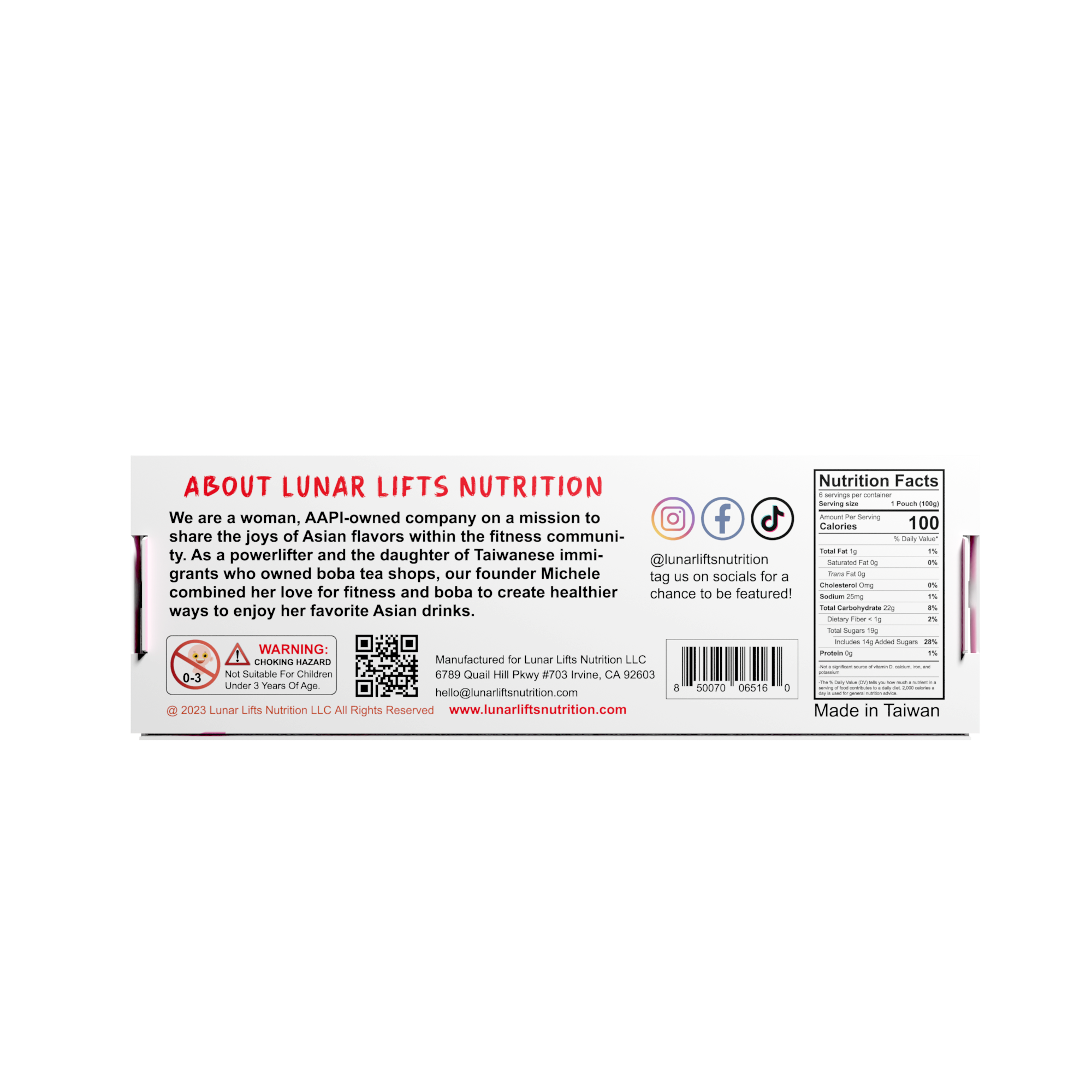 A juicy burst of nostalgia, our Lychee Popping Boba delivers sweet, floral flavor in every bite - 0 prep time needed. Wrapped in a plant-based seaweed shell, it’s perfect for adding a refreshing pop to your favorite Lunar Lifts protein for a boba tea that supports your fitness goals.
