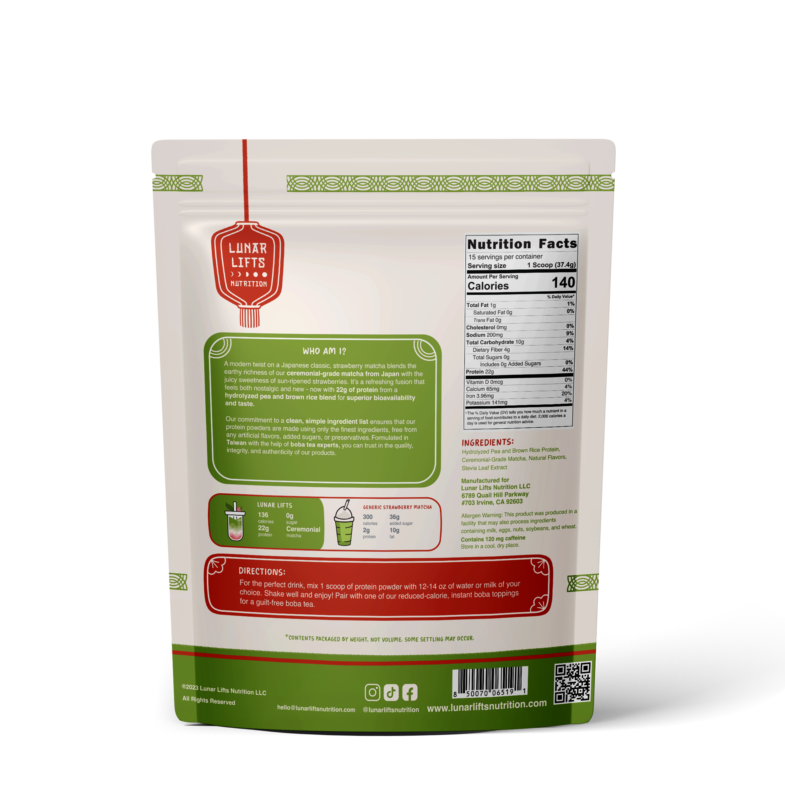 Like springtime in a cup. Juicy strawberries meet ceremonial-grade matcha for a fresh, vibrant sip that tastes just like your favorite cafe drink, only now with 22g protein. We let the color speak for itself- 1 scoop blends into a rich green latte that's equal parts refreshing and comforting. Think nostalgic strawberry milk with the earthiness of matcha, and SO good for you.